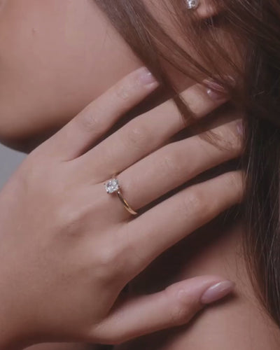 A bold yet timeless piece, this solitaire ring features a lab-grown radiant-cut diamond, known for its crisp lines and brilliant sparkle. Set on a sleek 18K gold band, it’s designed to stand out with understated elegance.